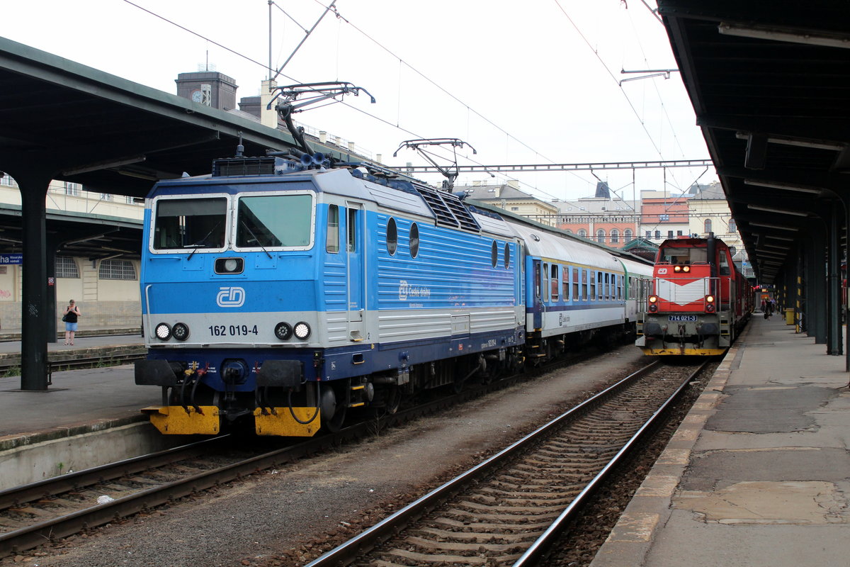 Dieseltriebwagen der CD: Wie auf diesem Bild zu sehen ist, verfügen die Triebwagen der Reihe 853 über verschiedene Fronten. Auf dieser Aufnahme ist ausnahmsweise die Frontpartie mit geschlossenen Wagenübergang und ausklappbaren Gummiwülsten an der Zugspitze zu sehen. Am Schluss des Zuges, der im Herbst 1998 abfahrbereit im Bahnhof Praha Masarykowo steht, befindet sich ein weiterer 853. Horst Lüdicke