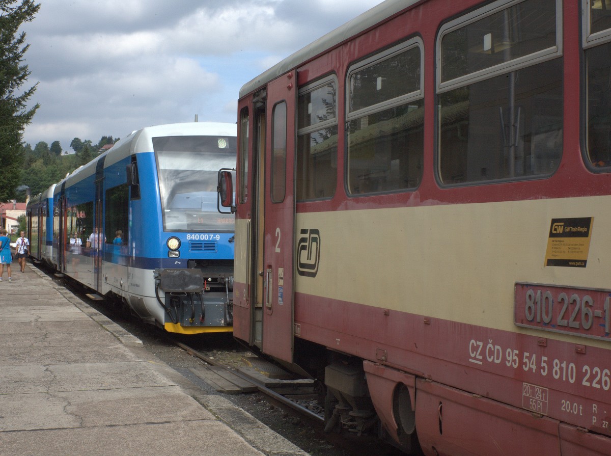 In Korenov muss man umsteigen , um mit der "Zackenbahn" weiter nach Szklarska Poreba zu fahren.Unkompliziert möglich.Der Fotograf verlässt den modernen TW der BR 840 und