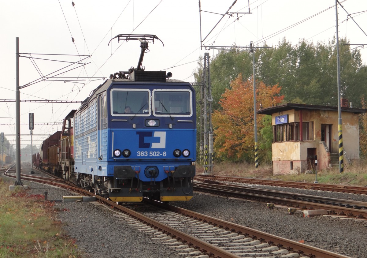 363 515 und 363 523 waren am 23.02.23 mit dem leeren Gipszug in Tršnice zu sehen.