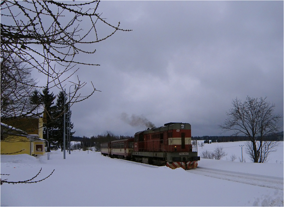 814/914 081 - 5 aus Karlovy Vary fährt in Horni Blatna ein, Weiterfahrt nach Johanngorgenstadt ,der Fotograf machte eine Nebelskitour aus Weitersglahütte kommend...10.02.2015 14:06 Uhr. Siegfried Heße