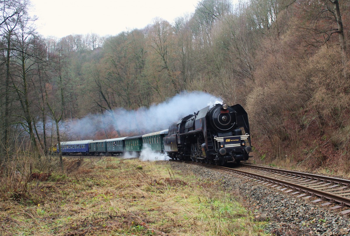 475 111 fuhr am 02.12.23 die Pendelfahrten von Sokolov nach Hrebeny und zurück. Am Zugschluss war 745 703, die den Zug zurück nach Sokolov fuhr. Hier zu sehen in Luh nad Svatavou.
