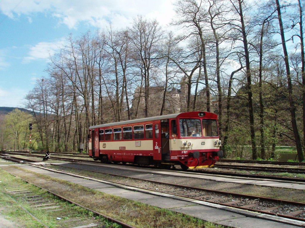 Treffen in Loket. TW 810 666-8 , der zwischen Chodov und Loket pendelt, trifft 642 738 der Erzgebirgsbahn, der als Sonderzug aus Zwickau kam.18.03.2023 14:45 Uhr.