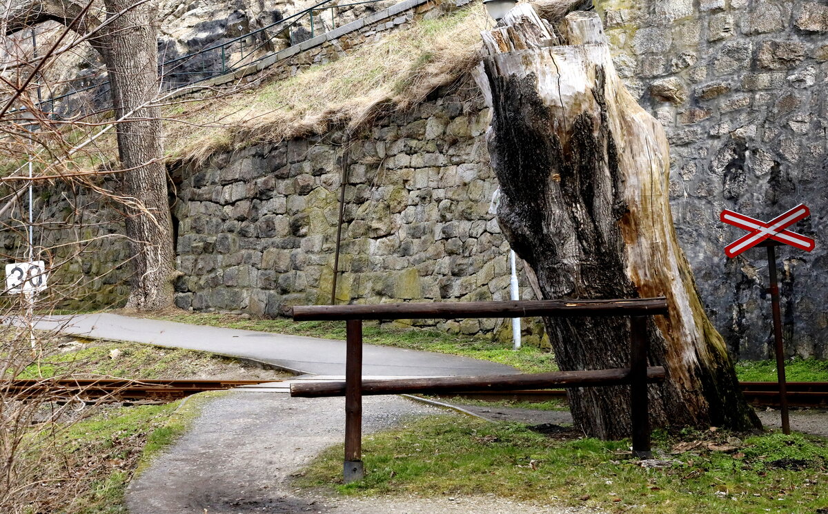 Ein kleiner Tunnel findet sich zwischen den Stationen Loket und Loket předměstí im Tal der Ohře.