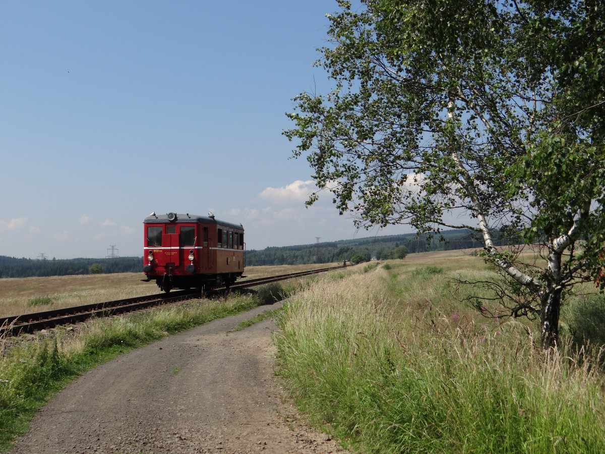 V75 018 fuhr am 27.08.16 von Schwarzenberg über Annaberg und Weipert nach Chomutov. Dort stand ein Besuch des Depots des Technischen Nationalmuseums Prag auf dem Programm. Hier der Zug in Nová Ves. Alexander Hertel