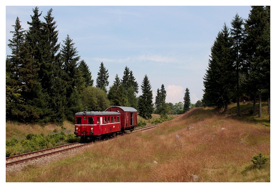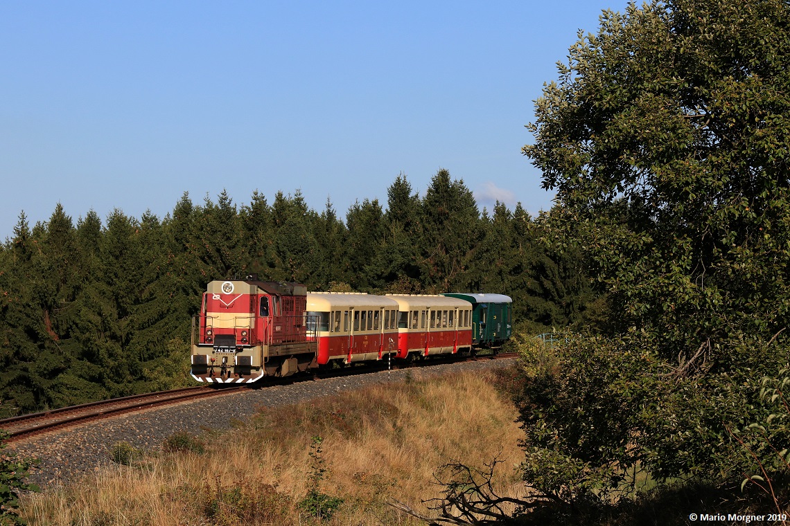 814 090 u. 814 058 mit den ersten CD Zug für diese Jahr auf der Weipert Schiene bei Kovářská 01.05.2015