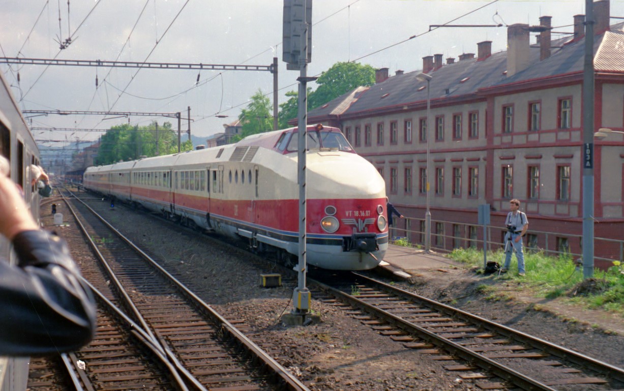 wahrscheinlich wegen seinem großen mittleren Fernlicht trugen die T 499.0001 und 0002 den Spitznamen Kyklop, hier steht im Juni 2001 zu einem Bahnhofsfest in Děčín die T 499.0002 Rainer Haufe