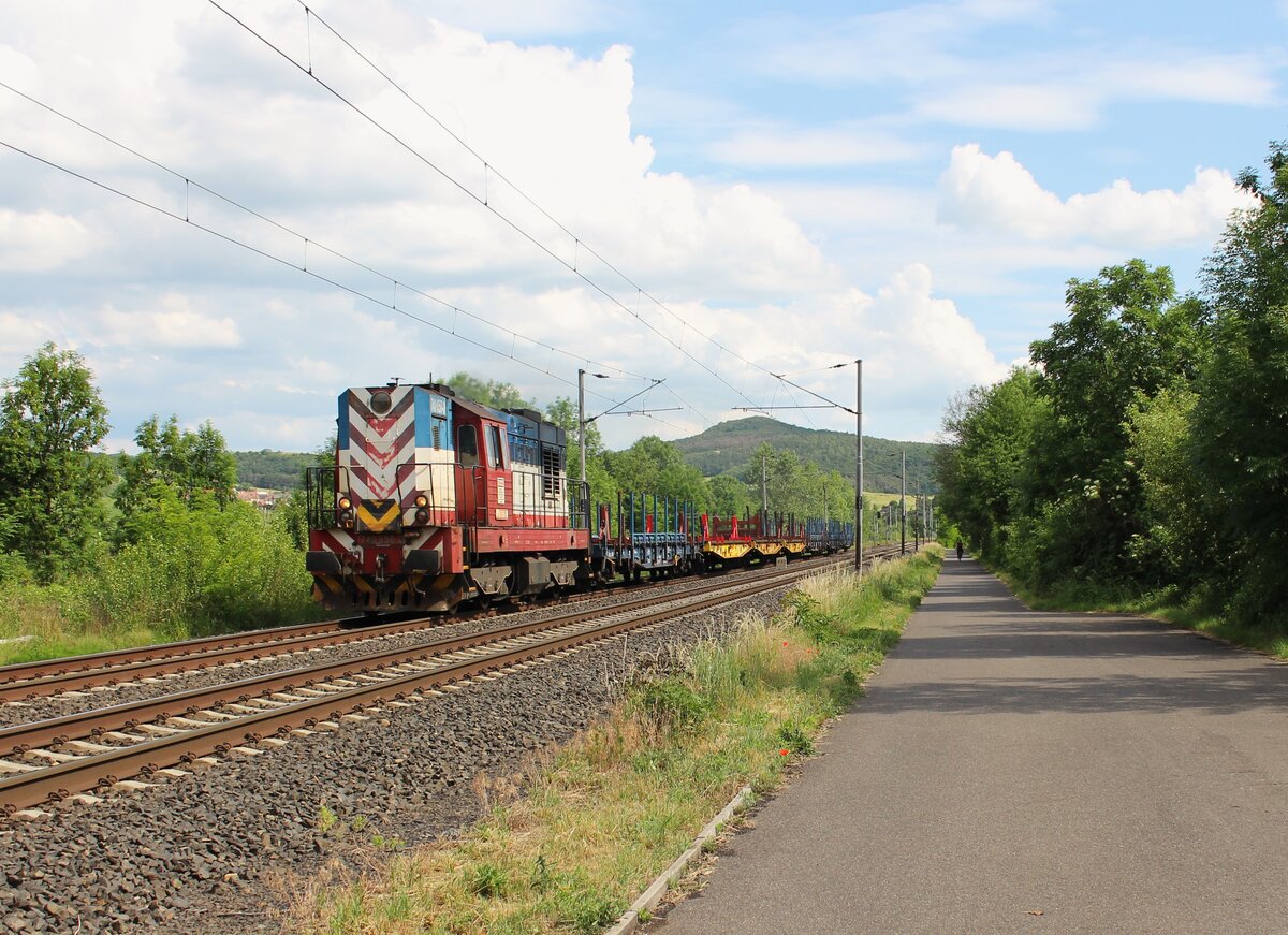 IDS 121 065 und 121 077 bei bestem Abendsonnenlicht an der Elbe bei Libochovany mit einem Getreidezug unterwegs gen Usti nad Labem. Aufgenommen am 26.05.2022 Andreas Schreiber