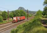 750 287 von CD Cargo mit einer Übergabe Mn 86612 aus Svetec nach Most. Aufgenommen am 21.08.2025 bei Zelenice, mit dem Boren im Hintergrund. Andreas Schreiber