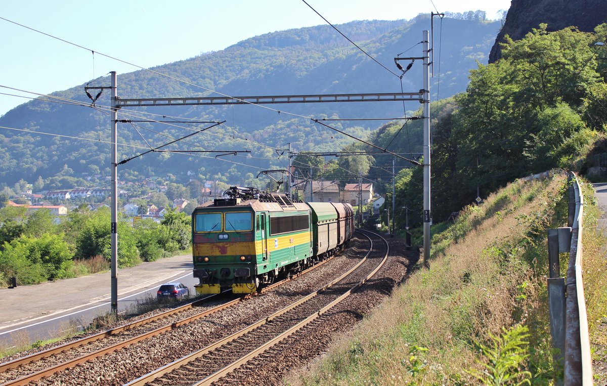 Kohlezug mit dem PKP Cargo Brillendoppel an der Kirche von Vanov vorbeifahrend in Richtung Kralupy. Die Führende, die 753 730 in leucht-grün blau und dahinter die 753 729 in grau orange lackiert. Aufgenommen am 20.3.2023 Andreas Schreiber