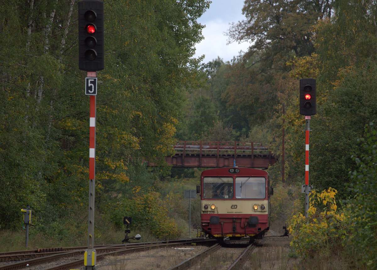 810 229 - 5 in Bezděz (deutsch: Schloßbösig) einfahrend , Richtung Bakov nad Jizerou (deutsch Backofen an der Iser) 04.10.2019 13:59 Uhr. Siegfried Heße