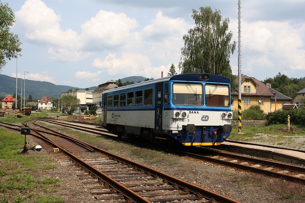 CD 810 292-3 "DANA" während der Wendepause vom Os 13664 (von Hanusovice) auf den Os 13667 (nach Hanusovice) am 21.Juli 2018 im Bahnhof Stare Mesto pod Sneznikem. Karl Seltenhammer