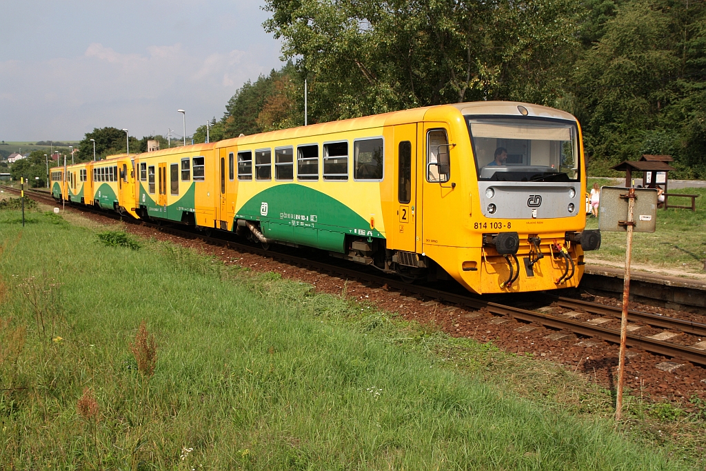 CD 814 103-8 am 08.September 2018 als erstes Fahrzeug des Os 4341 (Stare Mesto u Uherske Hradiste - Bojkovice Mesto) in der Haltestelle Popovice u Uherskeho Hradiste. Karl Seltenhammer