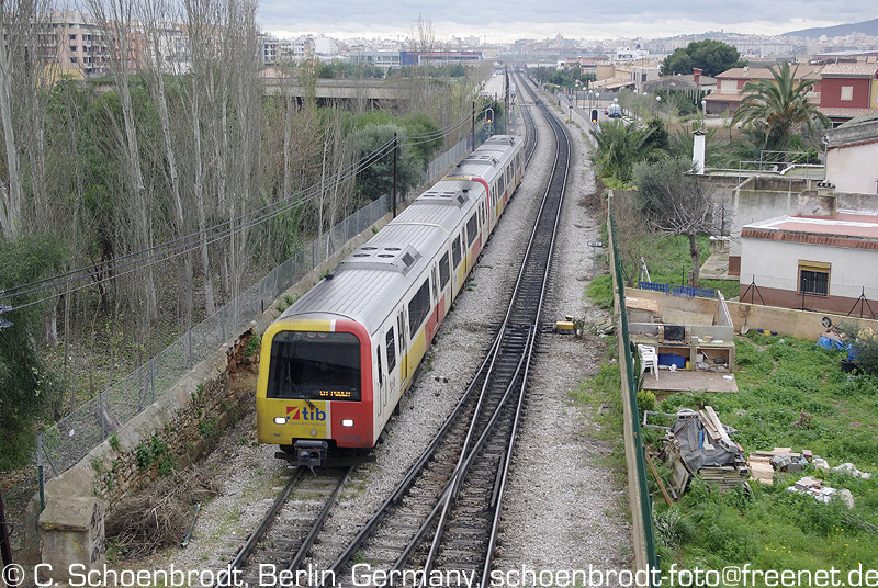Am 8. Oktober 2024 standen in Triebwagen 1 und 2 beschäftigungslos im Schuppen in Palma. Die für diesen Tag angekündigten Fahrten wurde alle abgesagt wegen eines Schadens an der Fahrleitung, vermutlich nach einem Gewittersturm in der Nacht davor. Meine Videoaufnahmen der Ein-und Ausfahrt waren damit hinfällig. Aufnahme durch das geschlossene Gittertor. Heinz Bergner