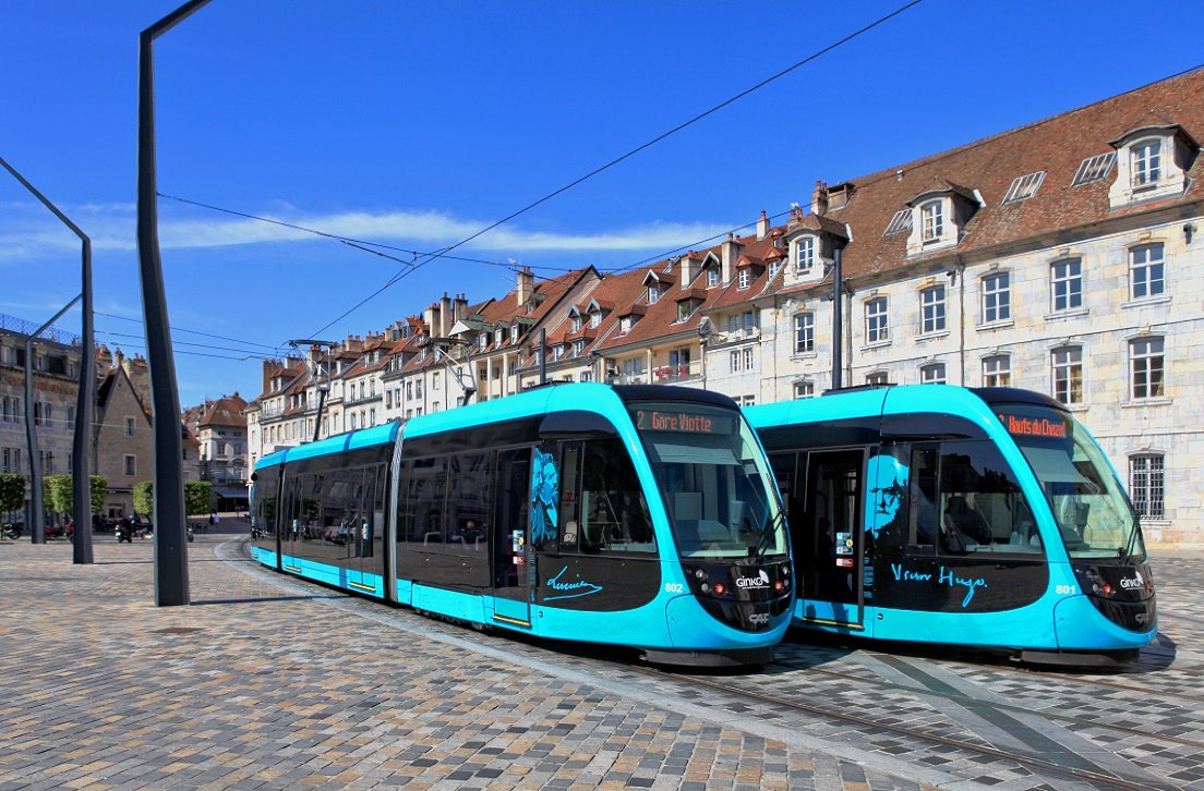 Der Straßenbahnverkehr in Besançon wurde 1952 eingestellt und am 30.08.2014 wiedereröffnet. Eingesetzt werden Niederflur-Fahrzeuge vom Typ Urbos 3 des spanischen Herstellers CAF.