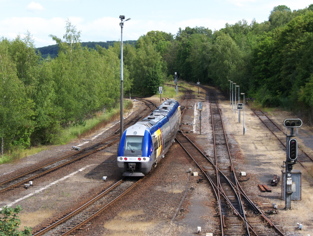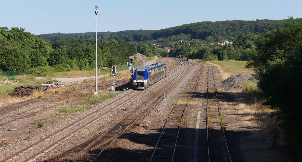 SNCF Ter 76537 (538) hat hier nur von Gleis 3 auf Gleis 4 des Bahnhofs in Saargemünd rangiert und ist deshalb einige hundert Meter auf das Streckengleis nach Béning ausgezogen.