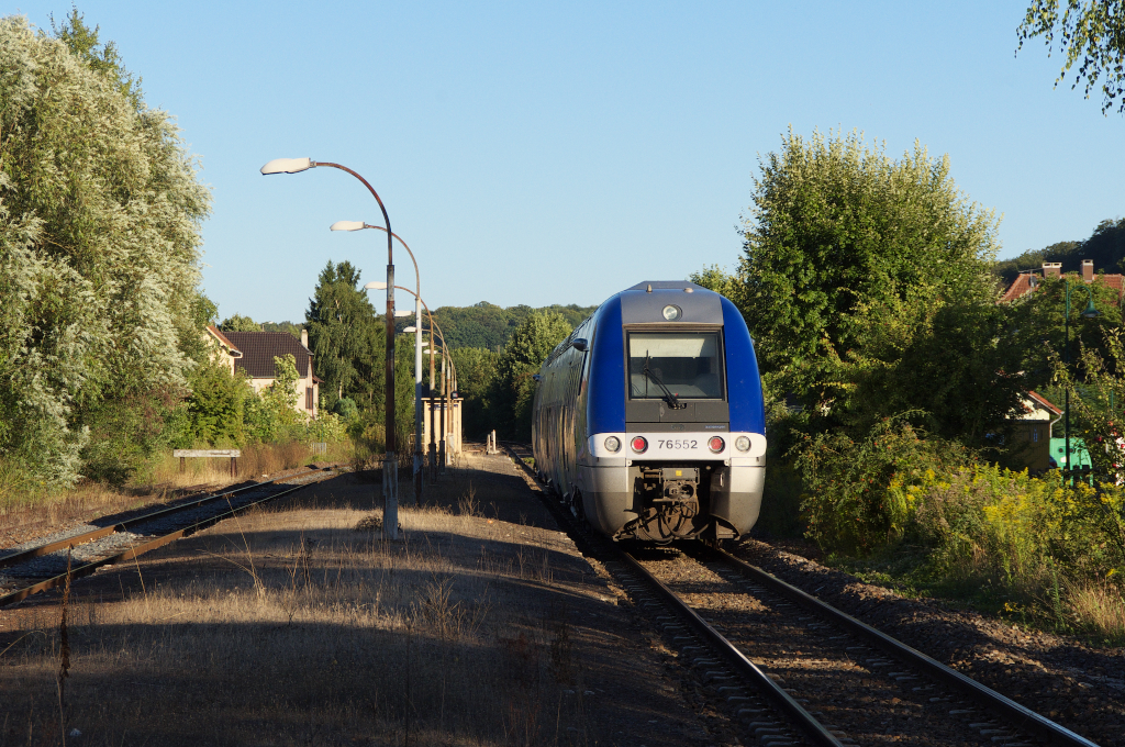 Der Regionalexpress aus Sarreguemines erreicht gleich das "Krumme Elsaß"! Für die Züge am Abend reichen aus Richtung Saargemünd die Triebwagen der Baureihe X 73900 (Baleine bleu) aus. Die Version ist Deutschland tauglich und wird auch über die Grenzen eingesetzt. So sieht man sie auch in Baden und im Saarland, sowie in Rheinland-Pfalz.