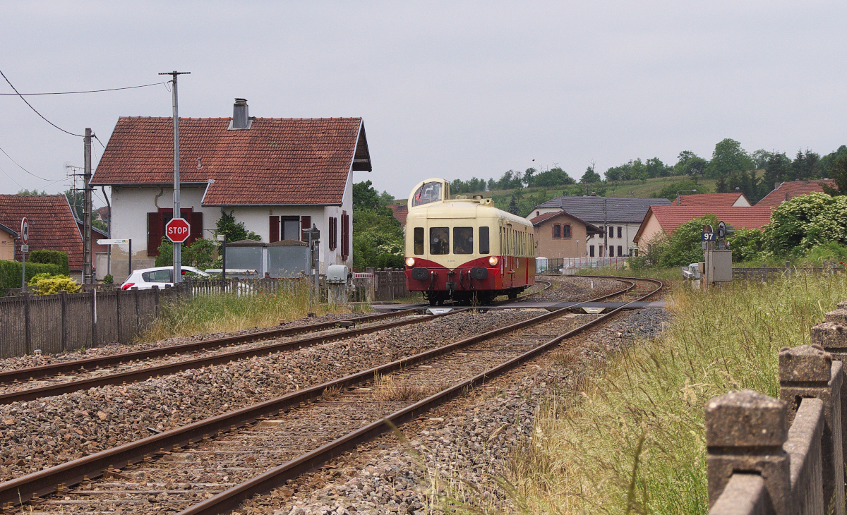 Picasso en voyage - Strecke 159 000 Haguenau - Hargarten-Falck beim Poste 97 und 96 (Fußgängerüberweg). Les Autorails de Bourgogne et de Franche-Comté organisierte eine 2 Tagesreise durch Lothringen. X 4039 hatte am 1. Tag eine lange Reise vor sich.