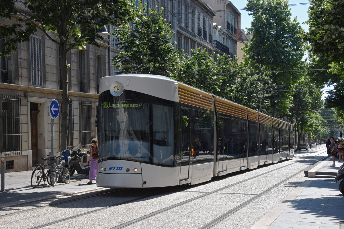 Der vierteilige Métro-Zug RTM-MB26+NB13+RB13+MB25 in der Endstation La-Fourragère der Ligne M1. (Zugtyp: MPM76, Hersteller: Alsthom, Indienststellung:1977). 2016-11-15 Marseille La-Fourragère Arnulf Sensenbrenner