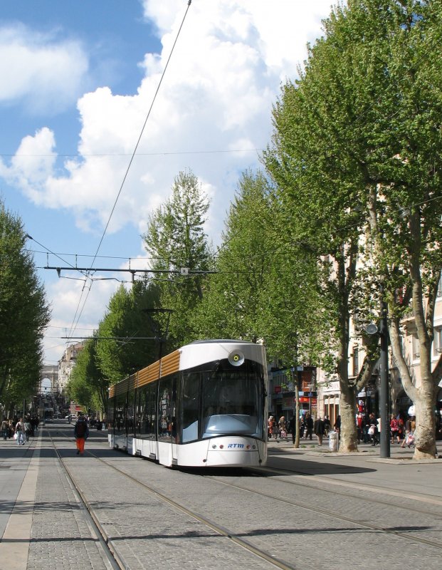 (Hinweis: Das Bild ist stark gezoomt. Ich stand außerhalb des zu befahrenden Strassengleisbereich kurz vor vor Eisensäulen, einzig der Gefahr ausgesetzt, dass Fußgänger über mich stolpern könnten.)