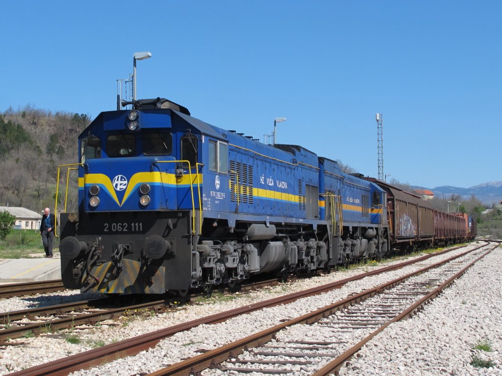 2062 111 und 2062 108 am 16. April 2013 mit Güterzug Richtung Split im Bahnhof Kosovo.