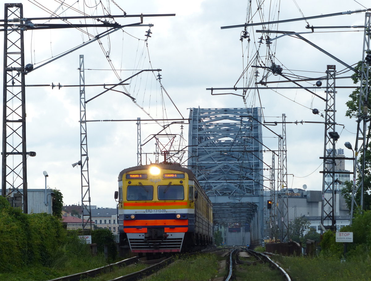 ER2-1310-09 hat gerade die Daugava in Riga überquert. 7.8.2016