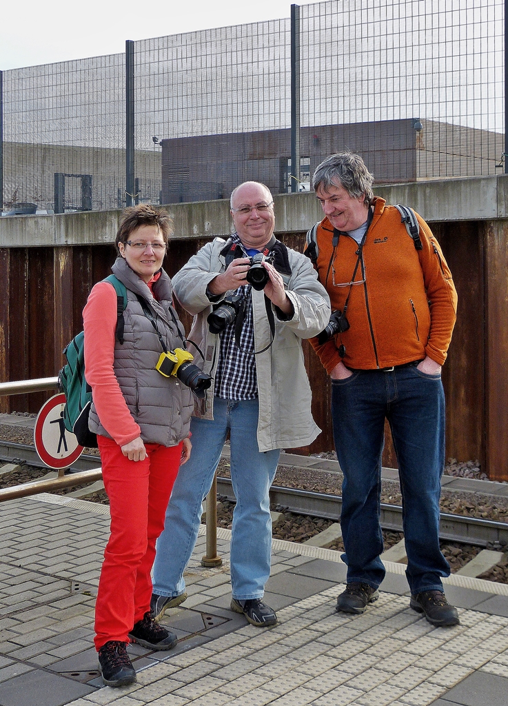 . Saarländisch-luxemburgisches Bahnbildertreffen – Von Wasserbillig führte unser Ausflug via Luxemburg Stadt nach Esch/Belval. Bei bestem Frühlingswetter waren schon so manche Aufnahmen entstanden und diese wurden im Bahnhof Belval Université von den BB Fotografen Ivie, Erhard und Hans in Augenschein genommen. 07.03.2014 (Jeanny) De Rond Hans und Jeanny