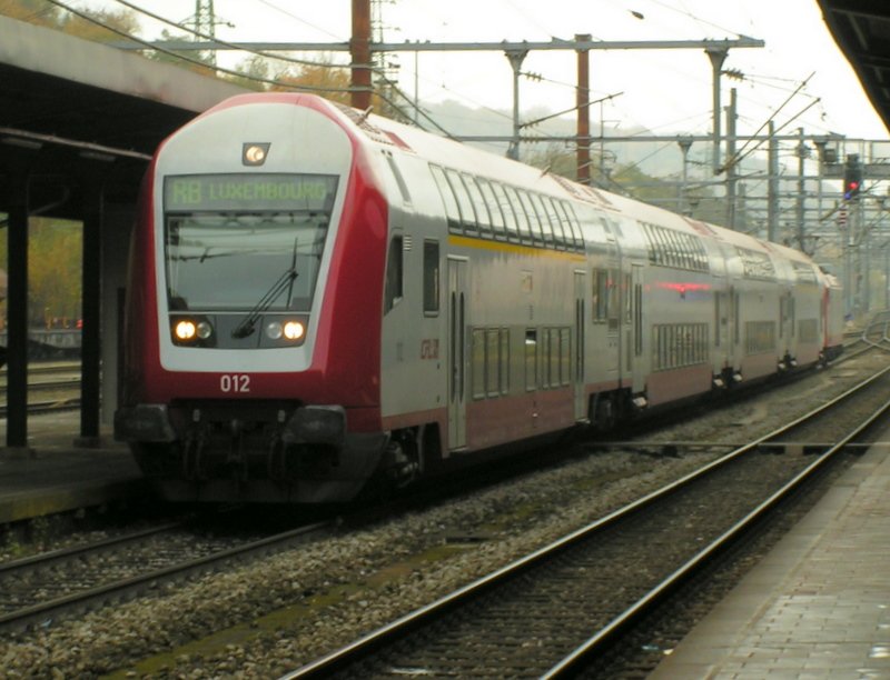 Steuerwagen 012 kommt im Bahnhof von Esch-sur-Alzette aus Richtung Pétange an. 31.10.07