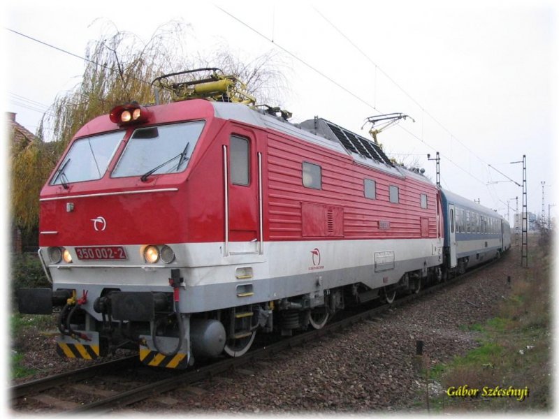 ZSR 350 002-2 mit dem EC 170 beim Abzweig Budapest-Rákosrendező am 02.12.2006.