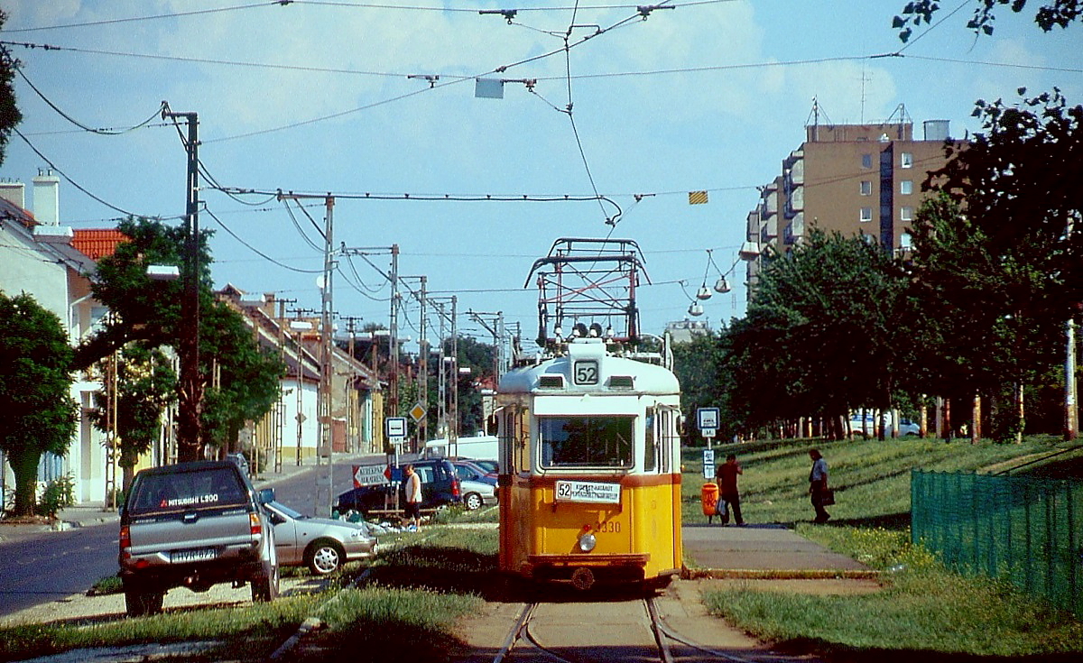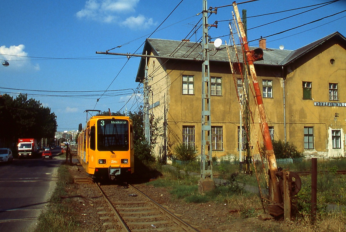 2002 kauften die Budapester Straßenbahnen 76 Triebwagen des Typs TW 6000 aus Hannover, hier überquert Nr. 1507 im Juni 2003 auf der Hatar ut. einen nicht mehr in Betrieb befindlichen Bahnübergang Horst Lüdicke