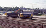 NS 2435 wartet am Huckepack Terminal der fa Trailstar in Ede-Wageningen am 04.07.1989. Aus einen Baum im Waldgebiet gegenüber bot sich diese Aussicht. Scan (Bild 4962, Ektachrome100HC). Rob Freriks