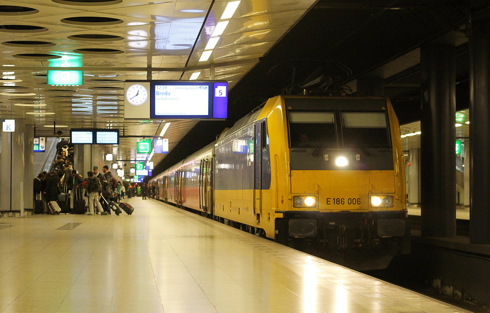 186 006 am 26. Dezember 2015 im Flughafenbahnhof Schiphol.