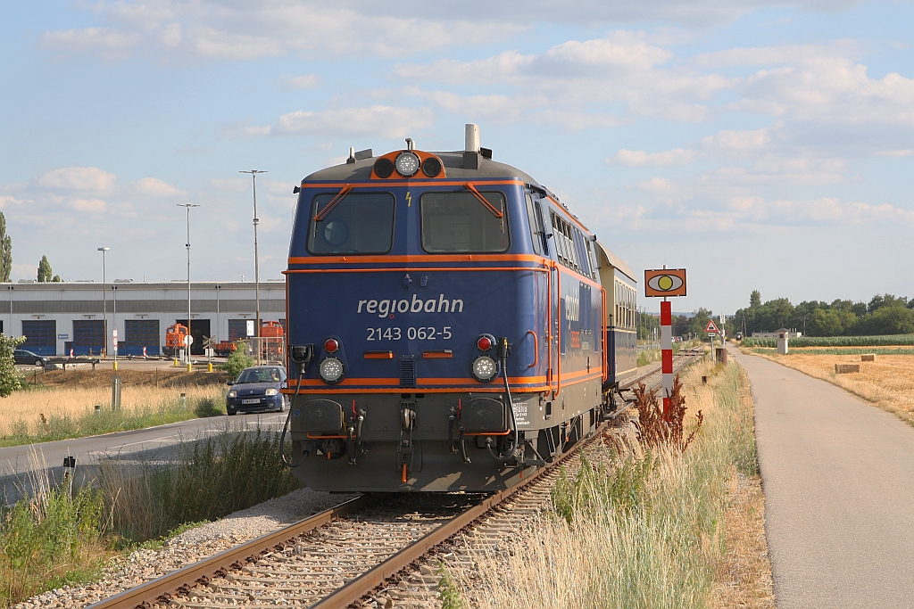 RBAHN 2143 062-5 am 10.Juli 2019 mit der SBED 95942 nach Flughafen Wien in Fischamend StEG.