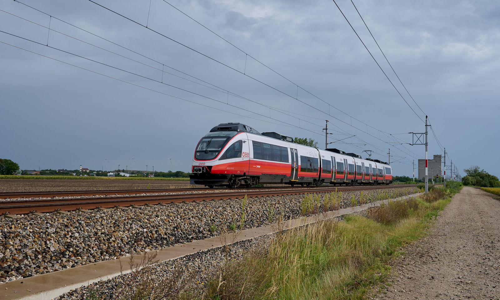 Die Marchegger Ostbahn hat ihr Erscheinungsbild in den letzten Jahren stark verändert und ist heute wieder ein internationaler Korridor, der Wien und Bratislava verbindet. 4024 021 war am 12.09.2025 als R2565 von Marchegg nach Wien Hbf. unterwegs. Gerade wurde der neu gebaute Haltepunkt Untersiebenbrunn verlassen. Michael Brunsch