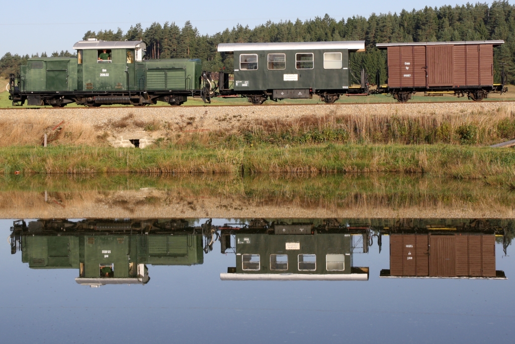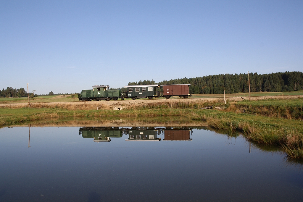WSV 2091.02 anlässlich des vom WSV veranstalteten 2 tägigen "Güterzugfestival im Wald4tel" am 10.September 2023 mit dem Begleitzug für die Fotographen beim Km 11,9 der Strecke Alt Nagelberg - Heidenreichstein. Karl Seltenhammer