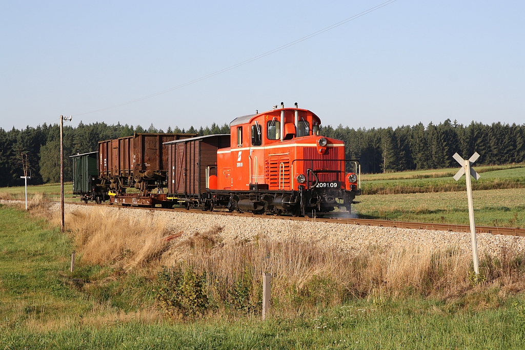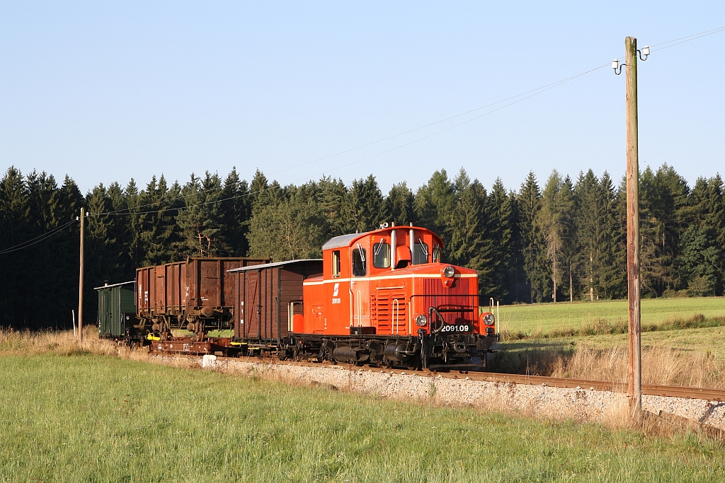 WSV 2091.09 anlässlich des vom WSV veranstalteten 2 tägigen "Güterzugfestival im Wald4tel" am 10.September 2023 beim Km 11,1 der Strecke Alt Nagelberg - Heidenreichstein. Karl Seltenhammer