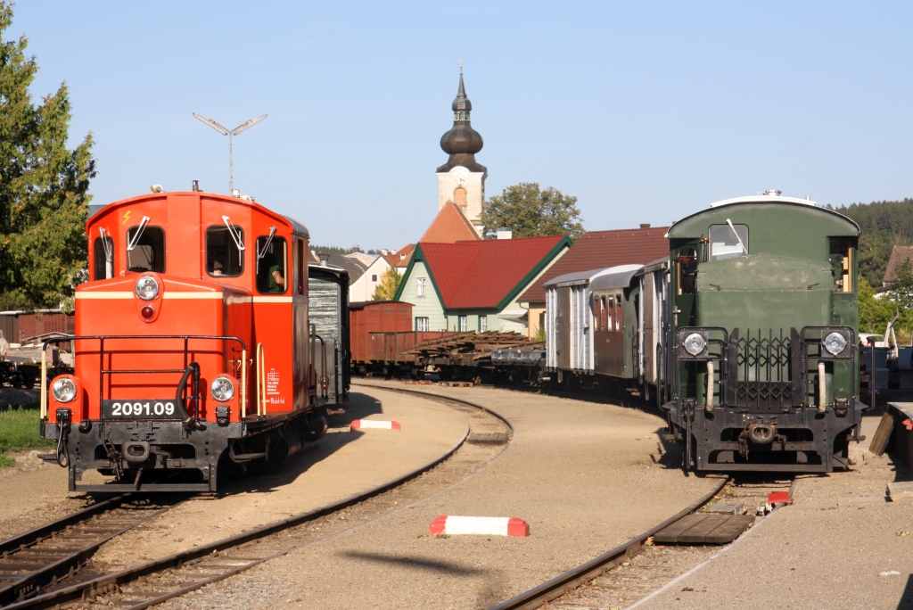 WSV 2091.09 und 02 anlässlich des vom WSV veranstalteten 2 tägigen "Güterzugfestival im Wald4tel" am 09.September 2023 im Bahnhof Heidenreichstein. Karl Seltenhammer