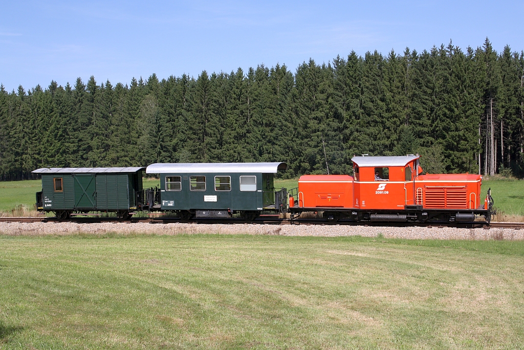 WSV 2091.09 anlässlich des vom WSV veranstalteten 2 tägigen  Güterzugfestival im Wald4tel  am 09.September 2023 kurz nach der Haltestelle Langegg beim Km 6,4 der Strecke Alt Nagelberg - Heidenreichstein.