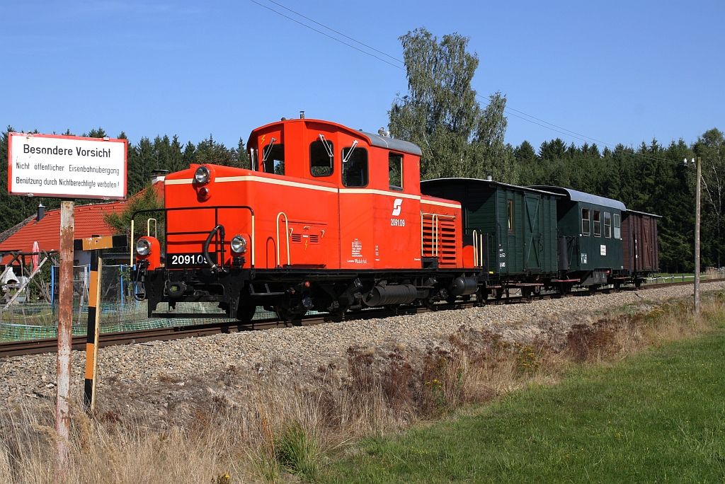 WSV 2091.09 anlässlich des vom WSV veranstalteten 2 tägigen  Güterzugfestival im Wald4tel  am 10.September 2023 beim Km 7,3 der Strecke Alt Nagelberg - Heidenreichstein.