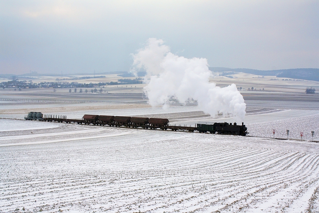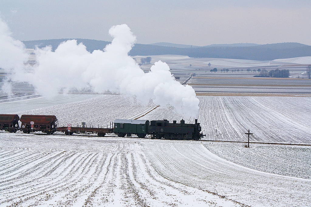 NLB 93.1420 als Nebenfahrt SGAG 14500 hat am 11.Februar 2013 die Hst. Mollmannsdorf verlassen und nimmt nun den Mollmannsdorfer Berg in Angriff.