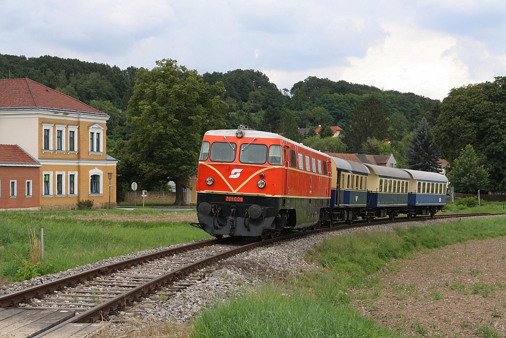 A-LOKTM 52.4984 hat am 24.September 2023 mit dem SEZ 17424 (Wien Praterstern - Ernstbrunn) die Haltestelle Mollmannsdorf durchfahren und nimmt nun den Mollmannsdorfer Berg in Angriff. Karl Seltenhammer