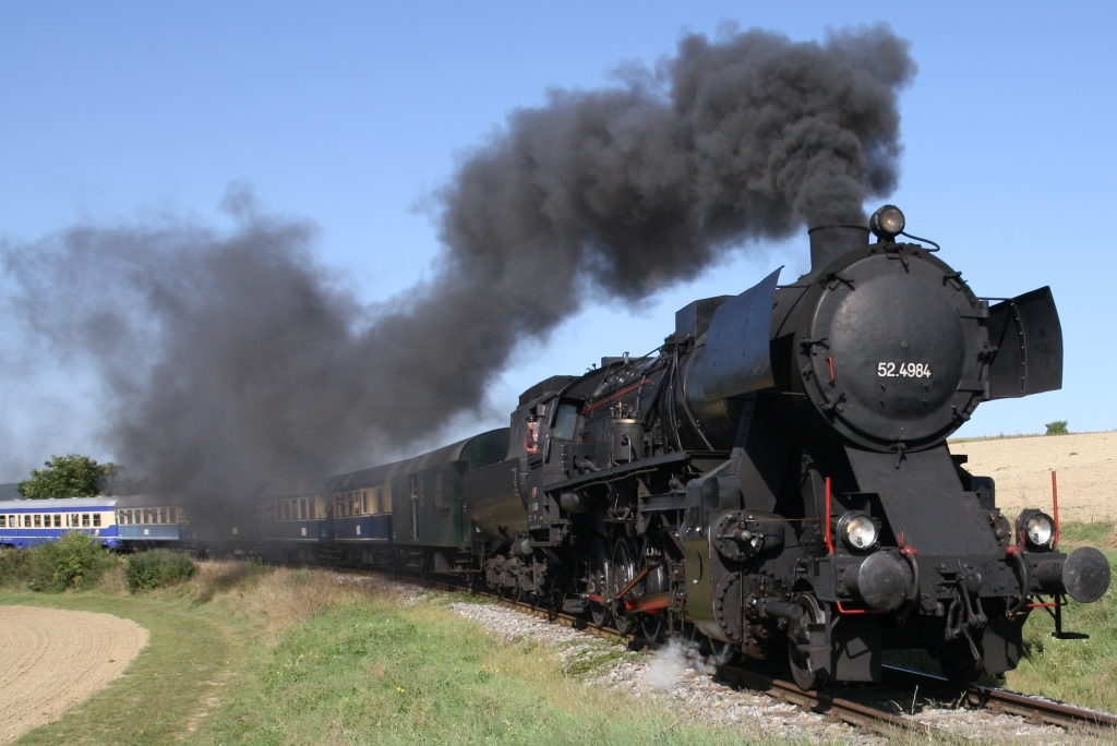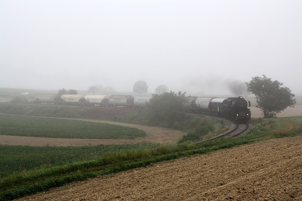 Das Weinviertel, unendliche Weiten und ... eine 52er. - A-LOKTM 52.4984 am 04.Okt. 2021 als (Nebel-) Nebenfahrt 14723 (Korneuburg - Ernstbrunn) auf der Lokalbahn Korneuburg - Hohenau zwischen Rückersdorf-Harmannsdorf und Mollmannsdorf.