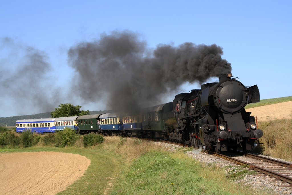 A-LOKTM 52.4984 hat am 24.September 2023 mit dem SEZ 17424 (Wien Praterstern - Ernstbrunn) die Haltestelle Mollmannsdorf durchfahren und nimmt nun den Mollmannsdorfer Berg in Angriff.