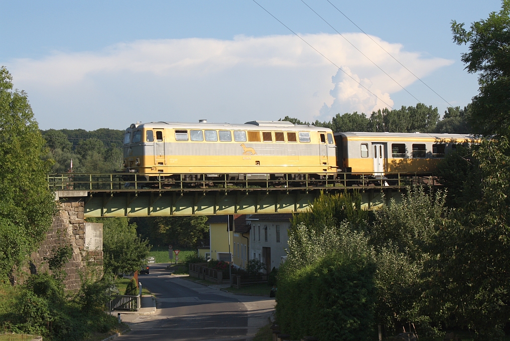 NÖVOG 2043.24 mit dem R 16954 von Krems a.d. Donau nach Emmersdorf a.d. Donau am 27.Juli 2013 auf der Brücke in Schallemmersdorf.