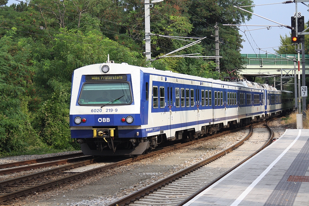 6020 219-9 am 16.August 2015 als erstes Fahrzeug des S2-Zug-Nr. 29381 von Mistelbach/Zaya nach Praterstern bei der Einfahrt in den Bf. Wolkersdorf Karl Seltenhammer