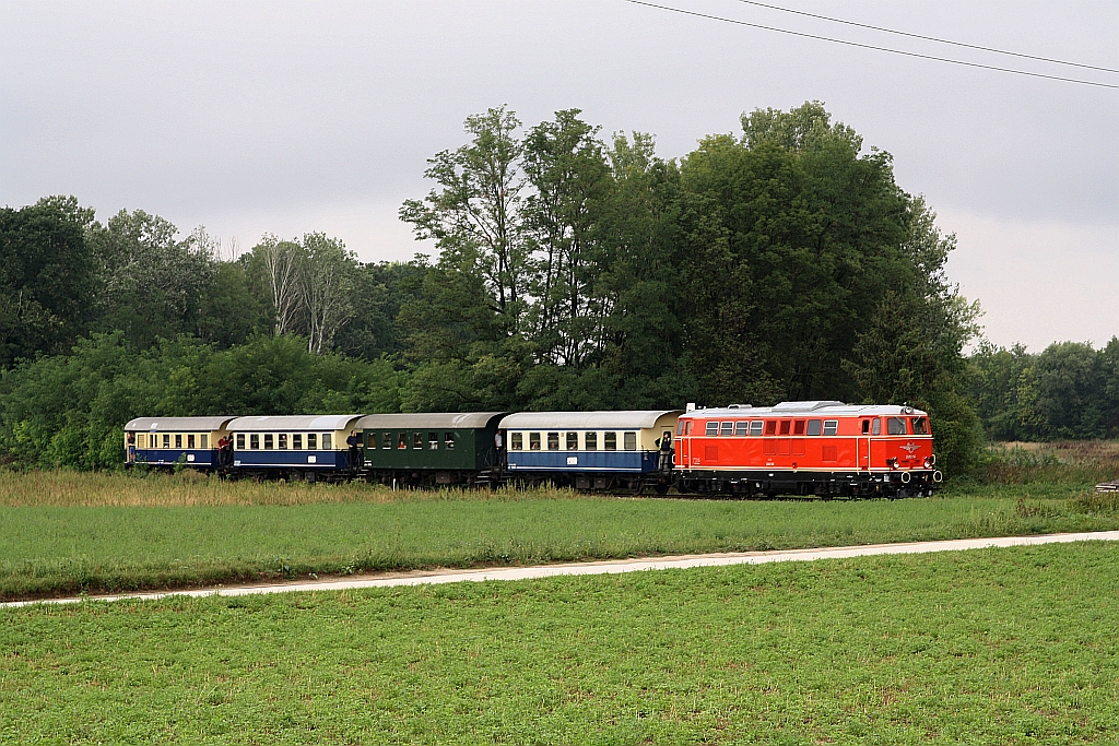 NLB 2143.56 am 02.September 2018 mit dem SR 16434 (Wien Praterstern - Zellerndorf - Laa/Thaya - Mistelbach) auf der Pulkautalbahn beim Strecken-Km 132,5. Karl Seltenhammer