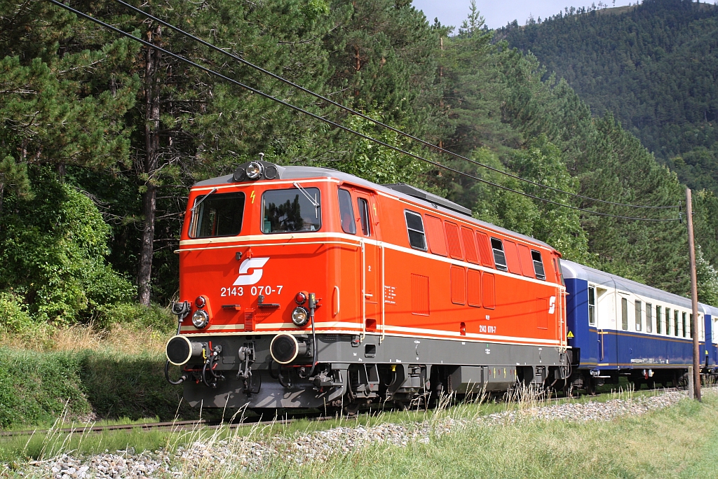 Ein Desiro überquert an der höchsten Stelle der Schneebergbahn (678 Hm.)die B 26 auf der Fahrt von Puchberg am Schneeberg nach Wiener Neustadt, September 2010 Michael Grinschgl