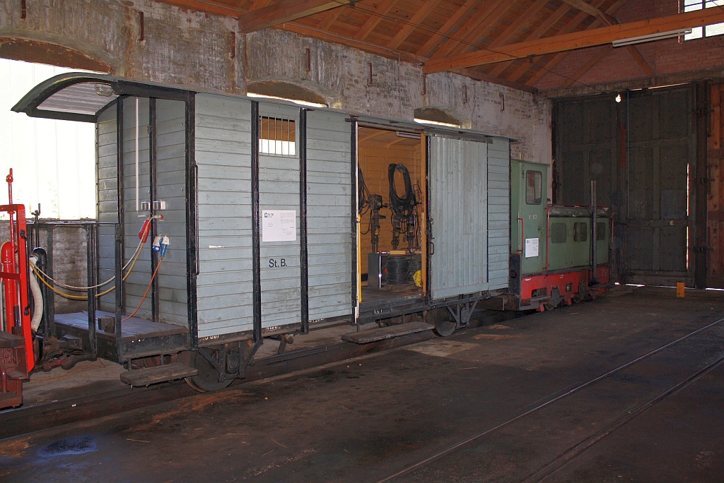 E I (Bo, Brand-Lhuillier/Brünn und Siemens-Schuckert/Wien, Baujahr 1903) am 25.September 2011 in der Remise Hirschwang. Im Hintergrund der abgestellte BW 12.