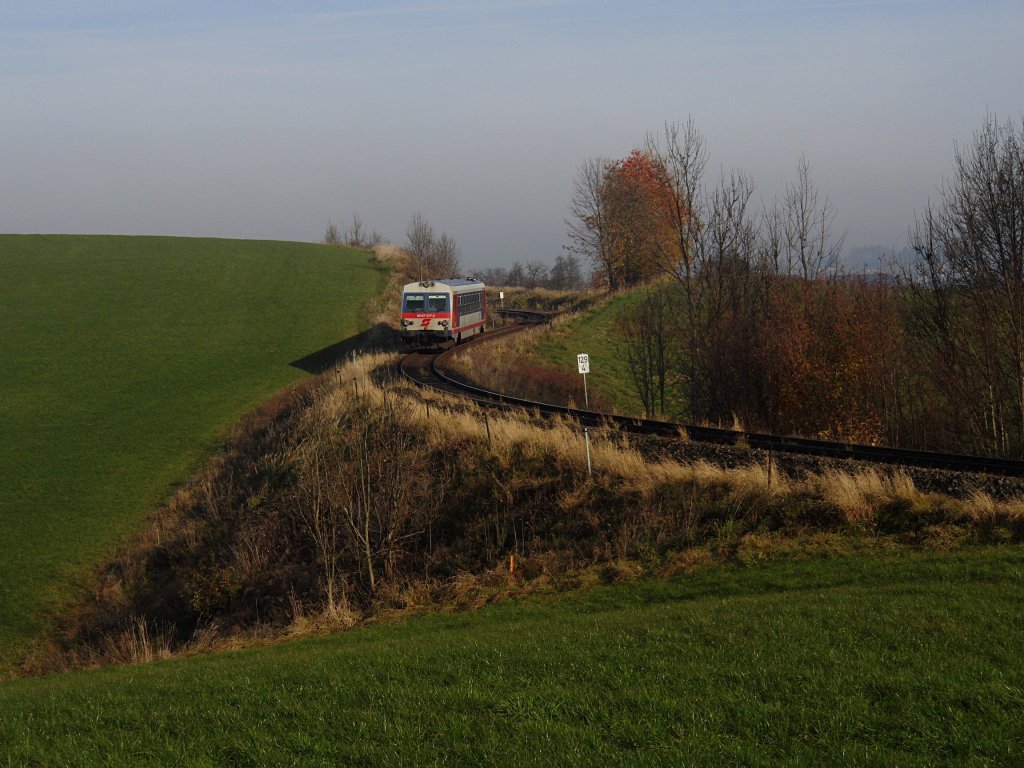 5047 077-2 als R 3467 von Attnang-Puchheim nach Ried im Innkreis ist am 14.11.2011 wenige Minuten zuvor im Bahnhof Hausruck abgefahren.