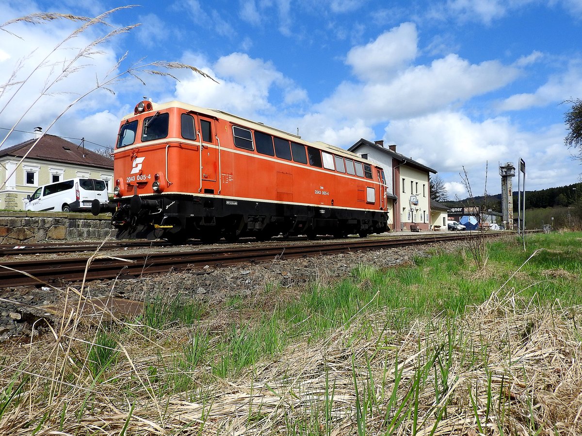 2043 005-4 >>Jumbo<<, pausiert im kleinen Bahnhof Hausruck; 170406