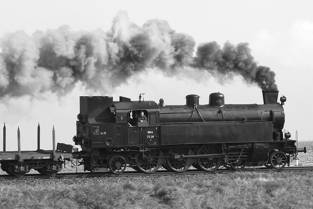 ÖGEG 77.28 fährt am 03.Oktober 2014 mit dem SGAG 17637 aus dem Bf. Hausruck.